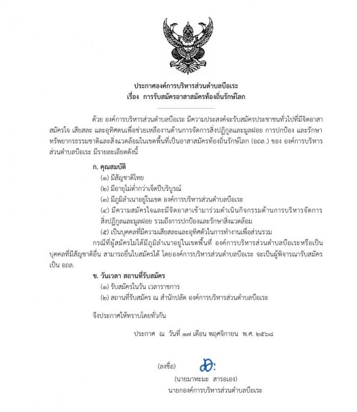 การรับสมัครอาสาสมัครท้องถิ่นรักษ์โลก